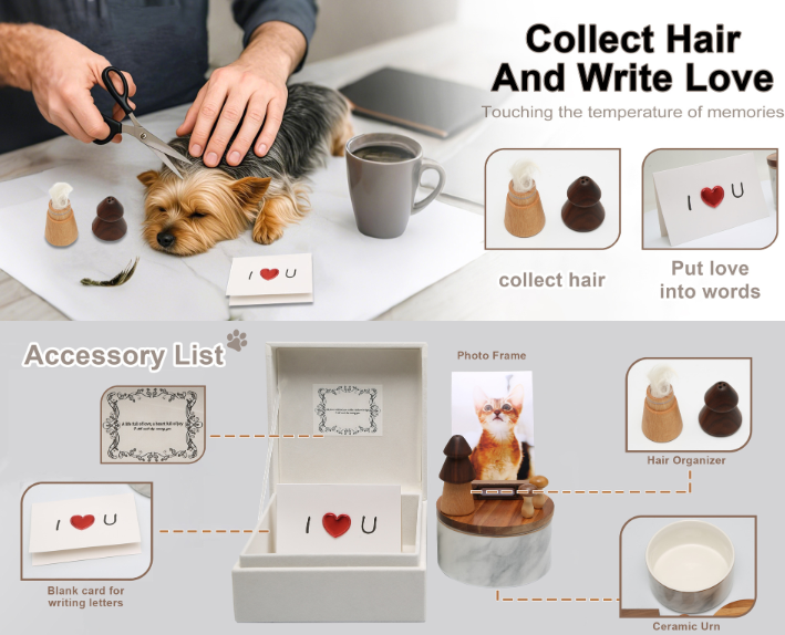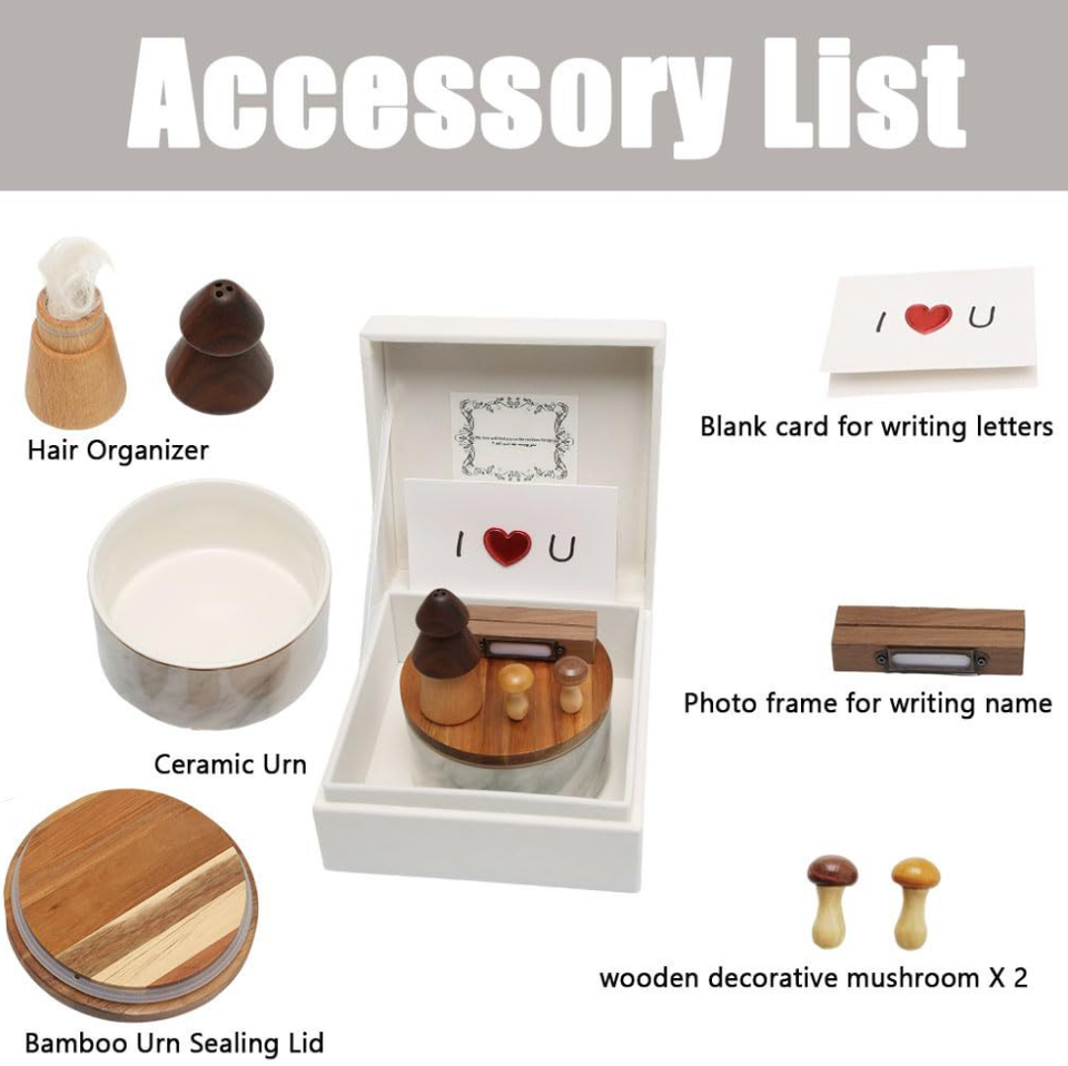 Components:Photo Frame, Writing Card, Small Mushroom Decorations, Hair Collector