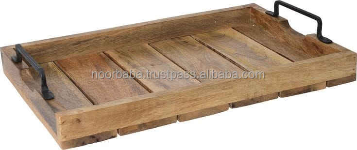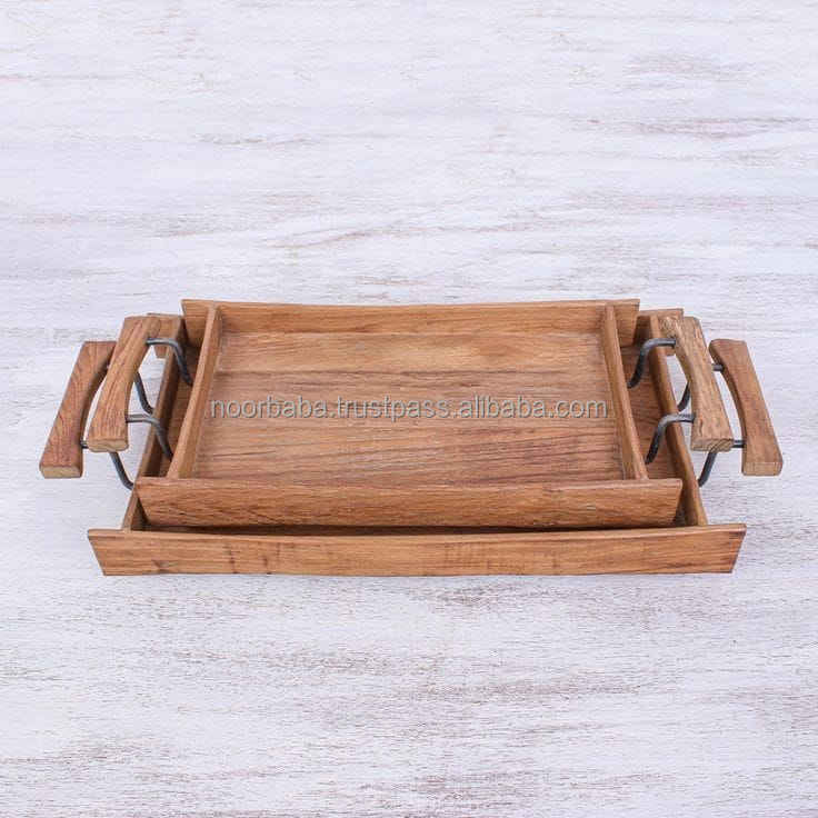 Modern Bamboo Tray Set with Polished Technique Natural Crafts Wood Serving Tray for Coffee Tea Dessert Featuring Metal Handle