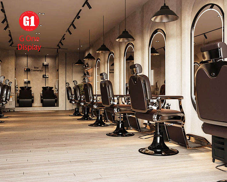 Modern Barber Shop Interior Design | LED Lighting & Custom Wall Mirror for Men Hair Salon Furniture Set