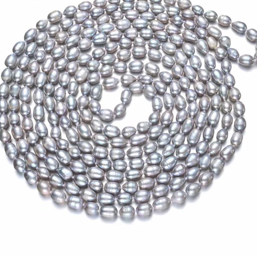 Product Name:Baroque Freshwater Pearl Necklace, 7-8mm White & Silver Oval Pearls