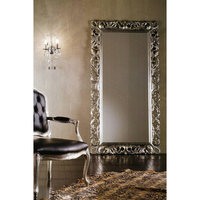 Modern Baroque Silver Leaf Floor Mirror Framed in Wooden Frame Rett. Silve Mirror