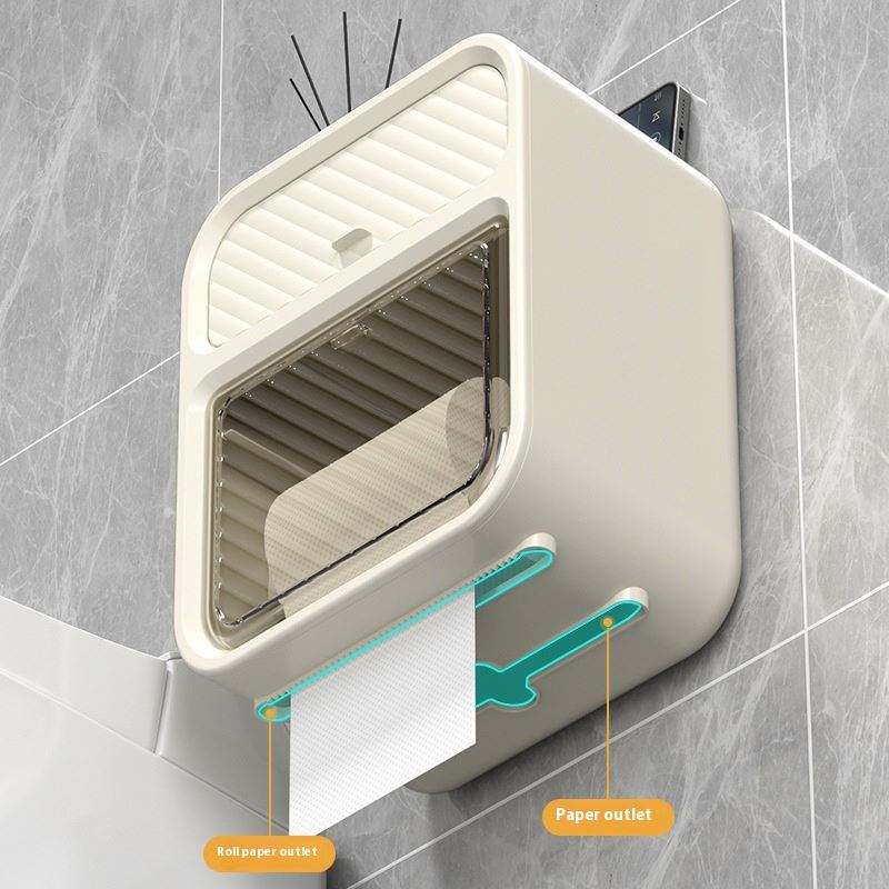 Modern Bathroom Toilet Box Waterproof Wall-Mounted Plastic Storage Rack Punch-Free Roll Paper Holder