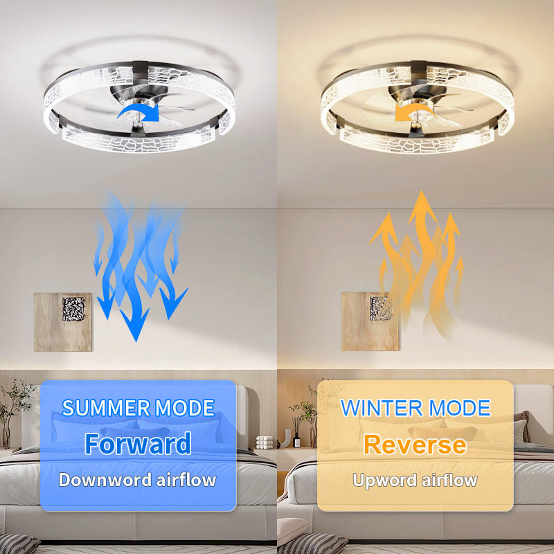 Modern Bedroom Ceiling Fan, 7-Blade (15.8") Acrylic Body, 3-Color Temperature LED, 6-Speed Quiet DC Motor, Remote/APP Control