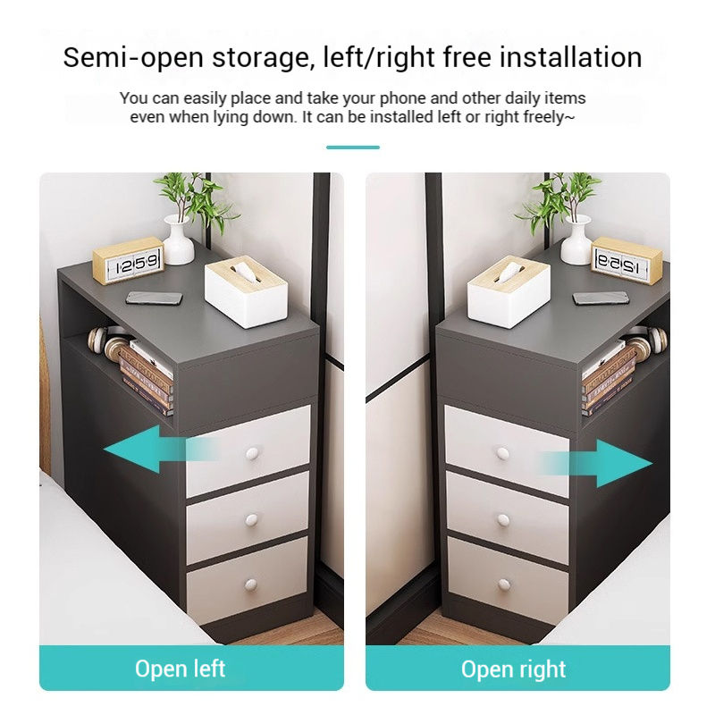 Modern Bedside Cabinet With Drawers Minimalist Wood Nightstand Table For Bedroom Household Storage Organizer Custom Logo