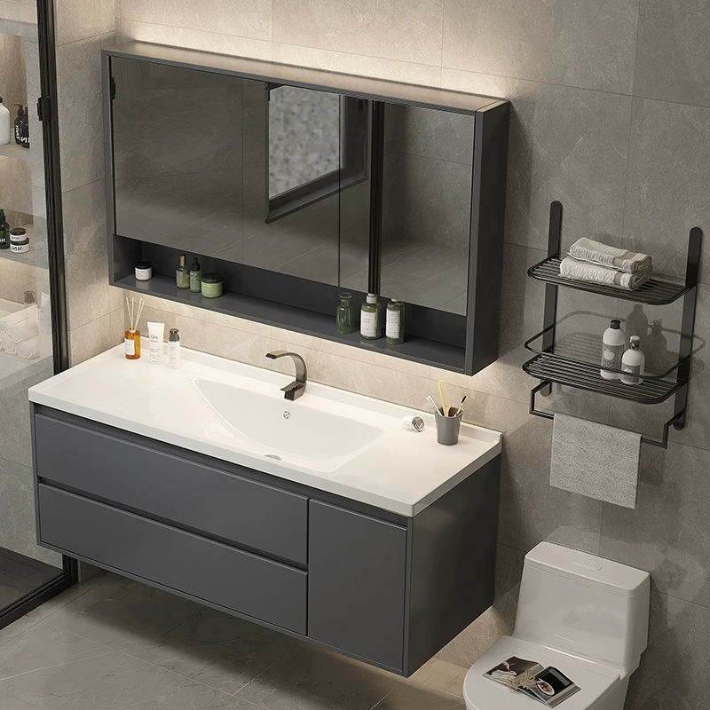 Modern Black Bathroom Vanity Smart Mirror Cabinet Integrated Sink and Mirror Cabinet Bathroom Vanity