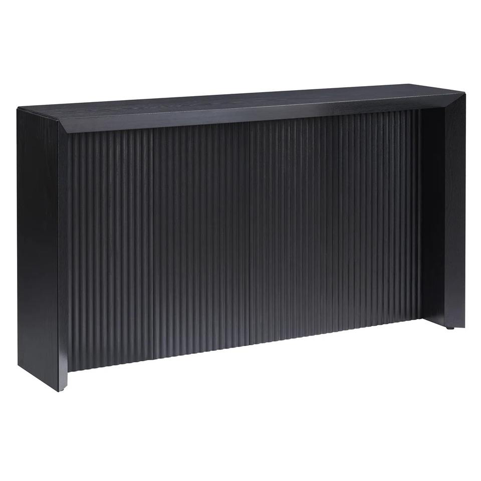 Modern Black Iron Console Table with Mirrored Convertible Design Vertical Fluted Texture Minimalist Block for Living Room Entry