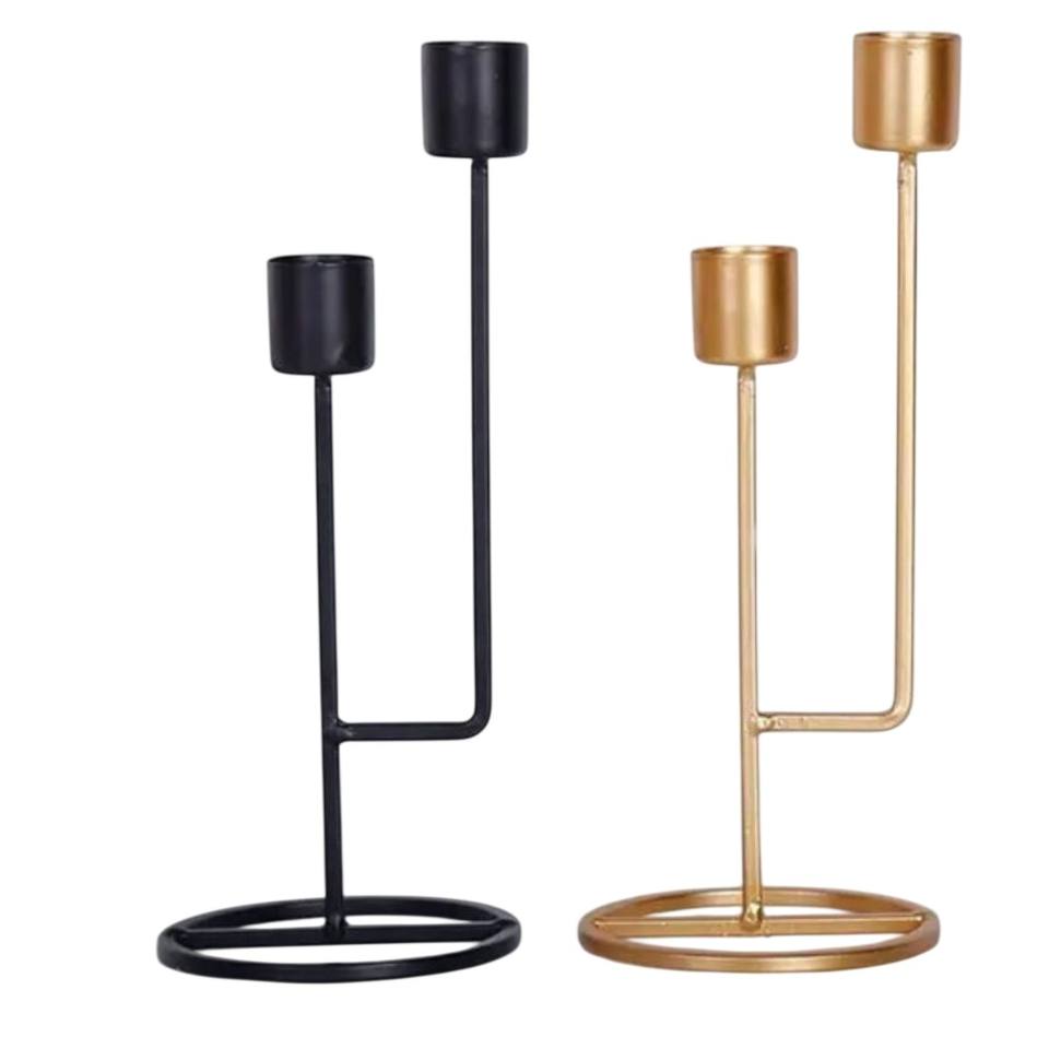 Modern Black & Gold Taper Candle Holders Set Of 3 Decorative Metal Candlestick Stands For Home Wedding Dining Table Decor