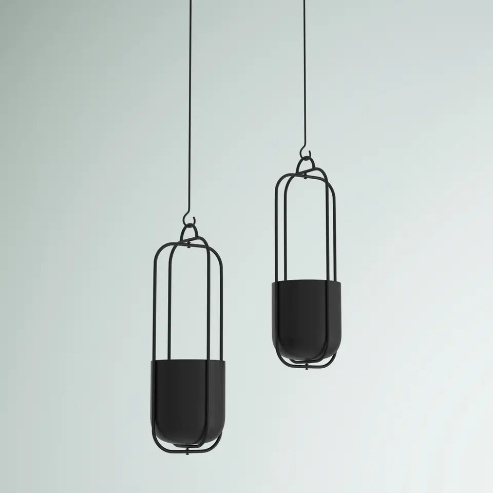 Modern Black Iron Flower Pot with Black Stand Round Planter Hanging Home Decor Plant Holder Indian Metal Hand Made Planter.