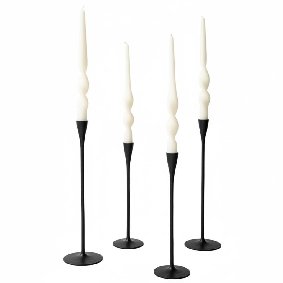 Modern Black Iron Taper Candle Holders Set Of 4 Metal Candlestick Stands With White Spiral Taper Candles For Wedding Table Use