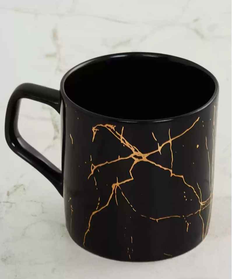 Modern Black Marble Ceramic Coffee Mug | 350ml Gold Accent Tea Cup for Office, Home & Promotional Use | Perfect for Gifting
