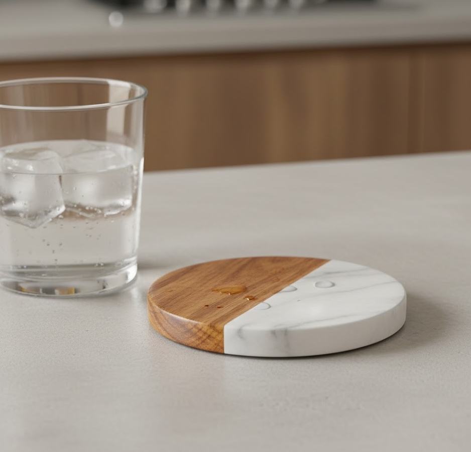 Modern White Marble Coasters Environmentally Friendly 4mm Thick AG Elements Set for Home Office Christmas Housewarming Gift