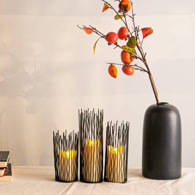 Modern Black Metal Candle Holder Set Decorative Pillar Candle Stand with Table Centerpieces for Home Decor and Living Room