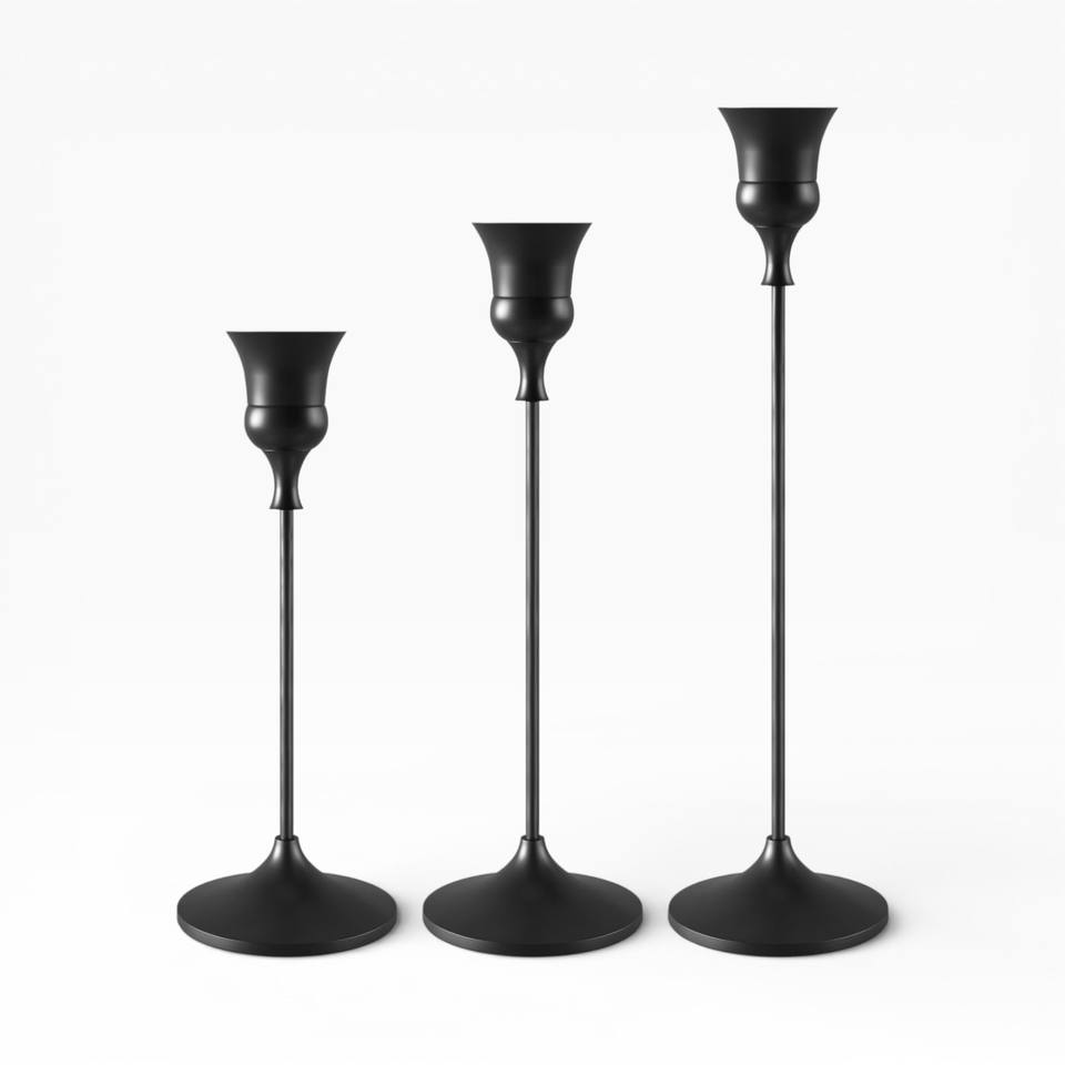 Modern Black Metal Candle Holders Pair With Curved Ring Design For Contemporary Home Styling