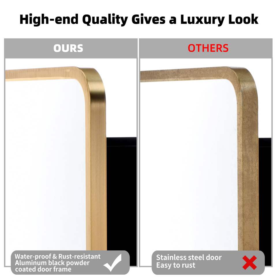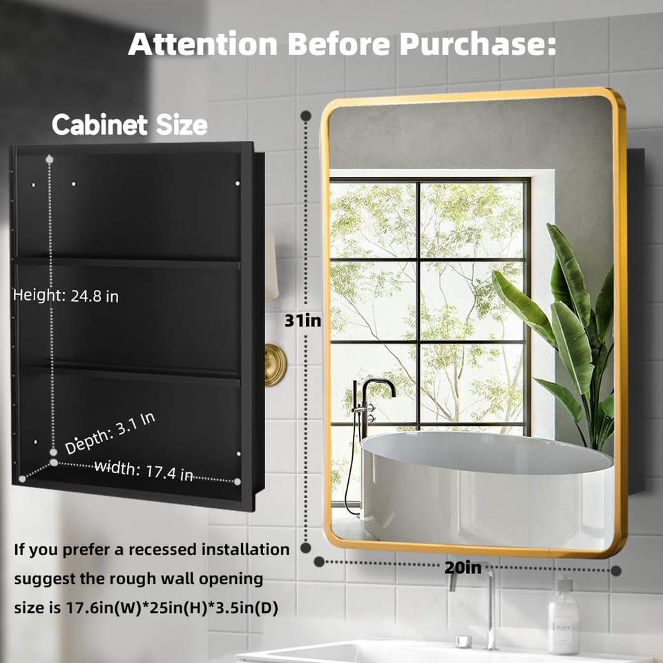 Modern Black Metal Framed Bathroom Mirror Rectangle Tilting Beveled Illuminated Medicine Cabinet with 1-Year Warranty for Hotels