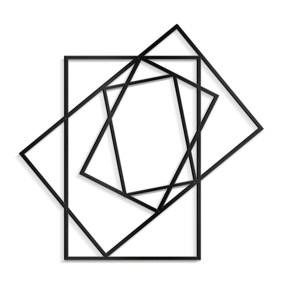 Modern Black Metal Geometric Wall Art Sculpture with Overlapping Rectangles Minimalist Black Metal Abstract Square and