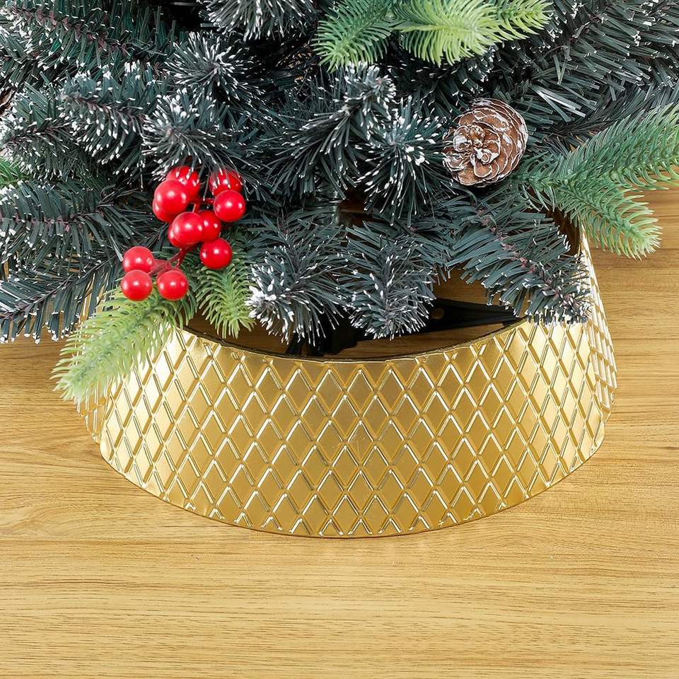 Modern Black Metal Tree Collar for Christmas Tree Stand Stylish Base Cover for Home Holiday Living Room Decoration
