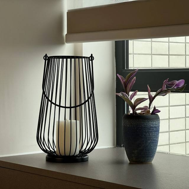 Modern Black Metal Wire Candle Holder Lantern Indoor Outdoor Home Decor Table Centerpiece Elegant Candle Jar Design