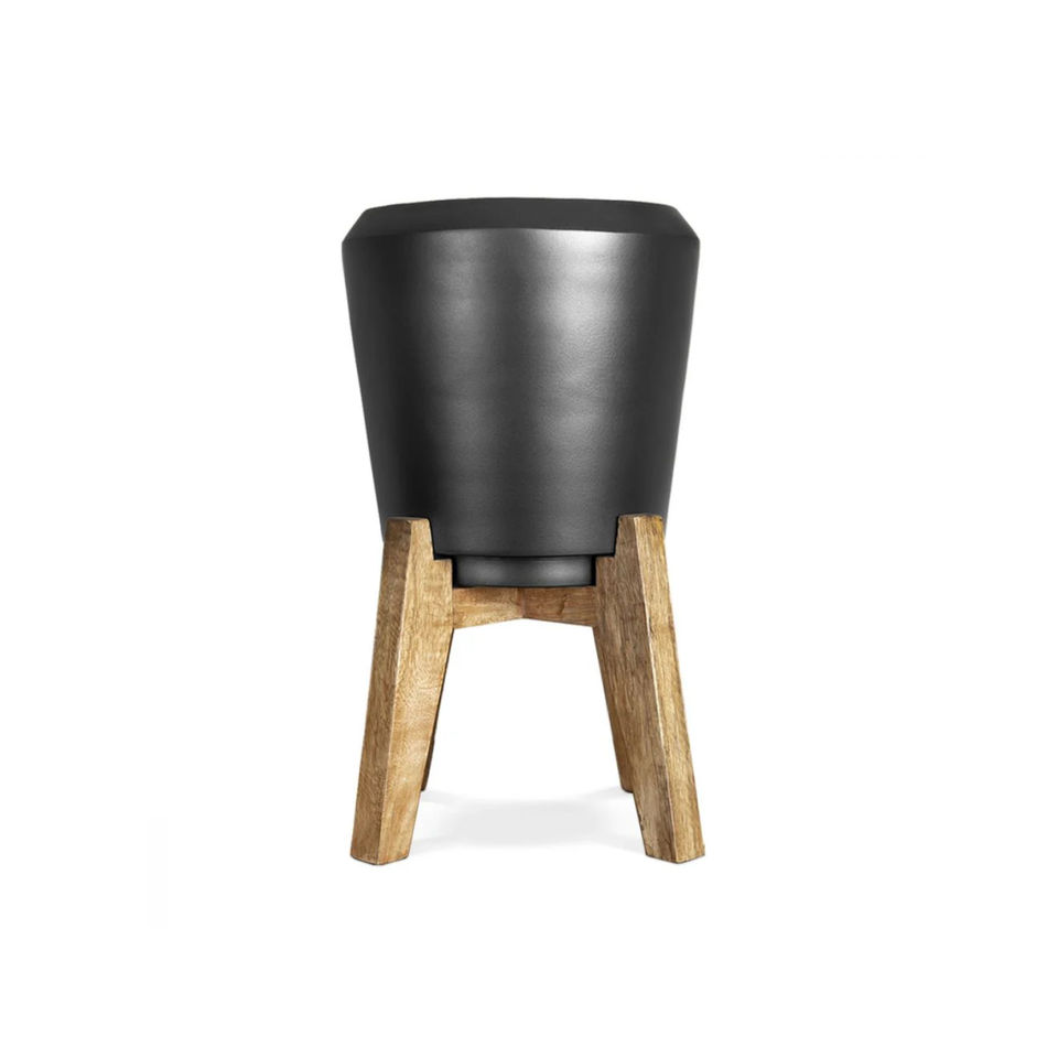 Modern Black Planter Pots with Wooden Stand Set of 3 Nordic Minimalist Indoor Outdoor Plant Holders Decorative Flower Pots