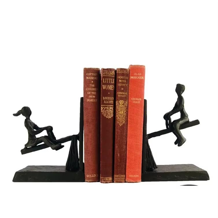 Modern Black See Saw Style Book Ends Unique Decorative Metal Book Holder Stand for Shelves Desk Office and Home Decor
