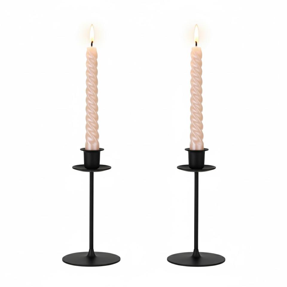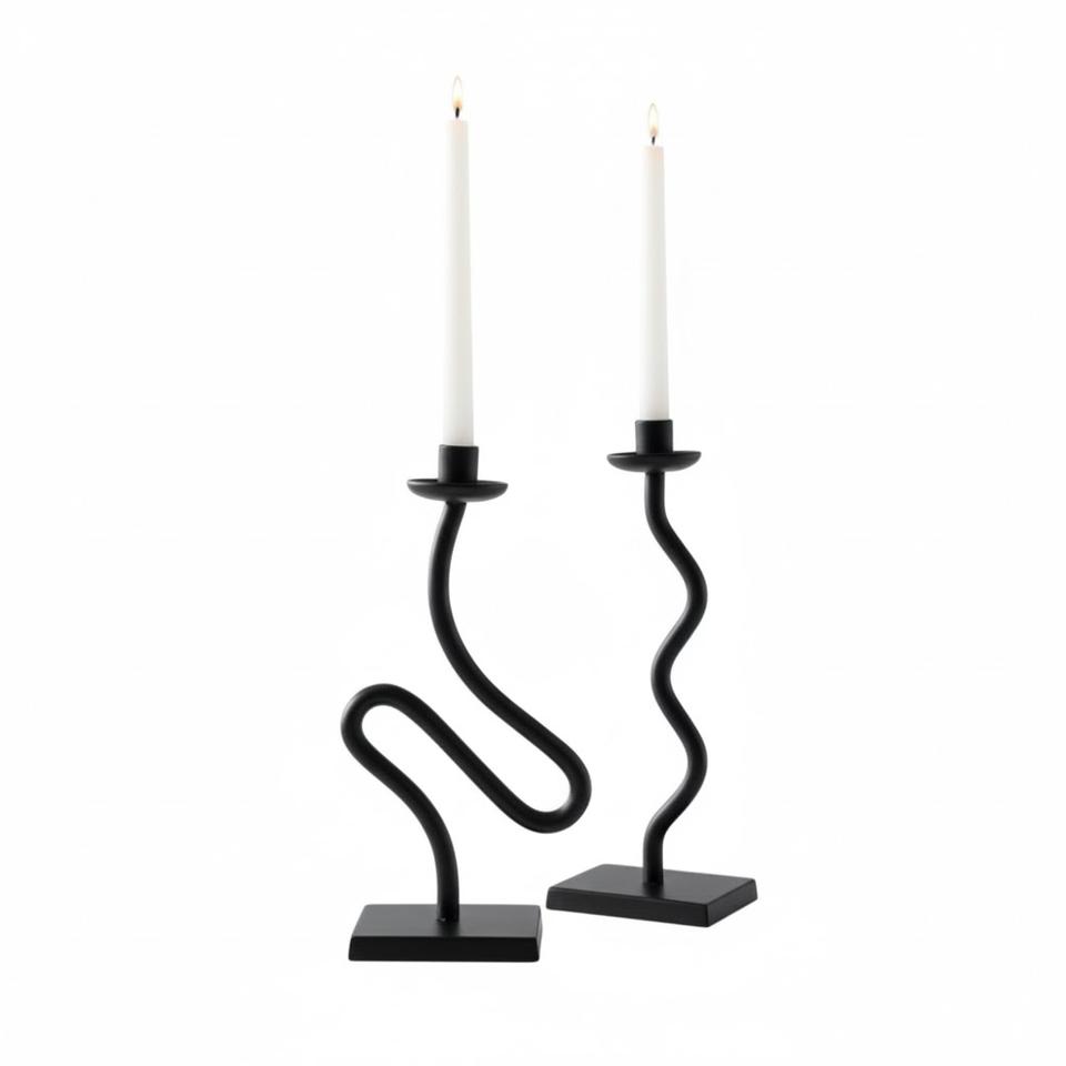 Modern Black Wavy Metal Candle Holder Set Of 2 Iron Taper Candlestick Stand For Home Decor Unique Tabletop Decor Candlestick