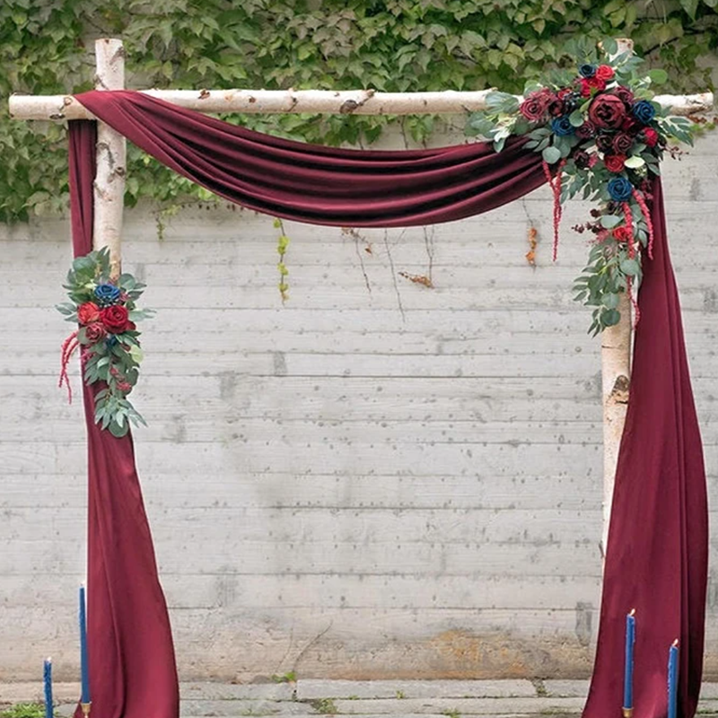 Modern Blue Floral Embroidered Party Table Cloth Ceiling Draping Drape Backdrop for Weddings Pleated Pattern with Rope Format