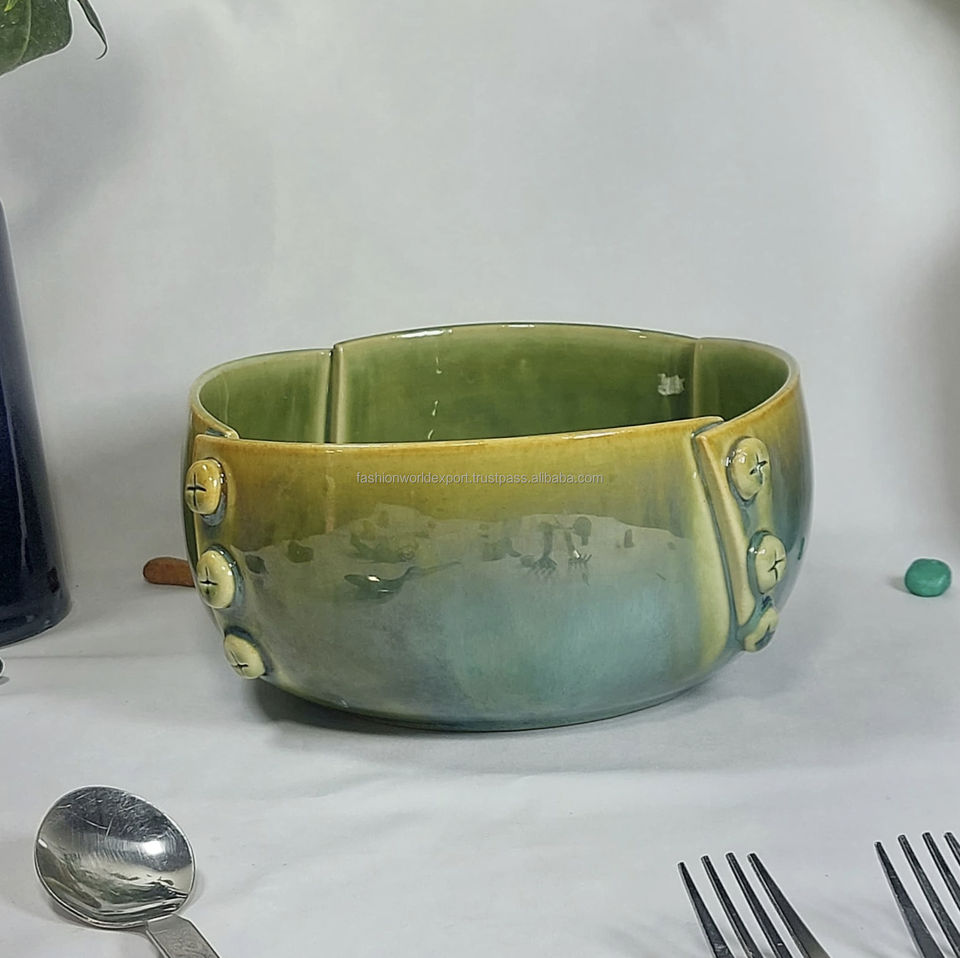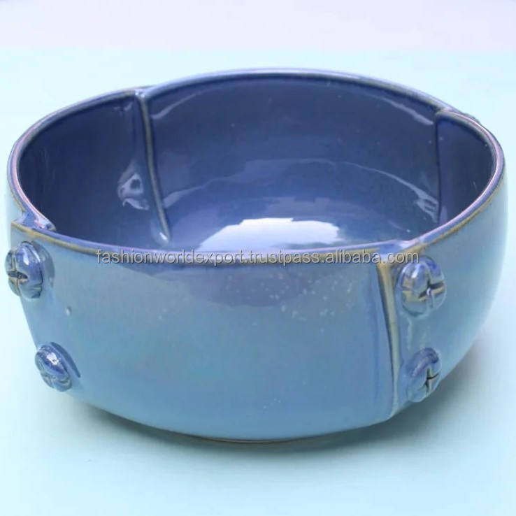 Modern Blue Glazed Bowl with 3D Screw Design Artisan Ceramic Pieces for Kitchen or Table Display Decorative Use in Kitchens