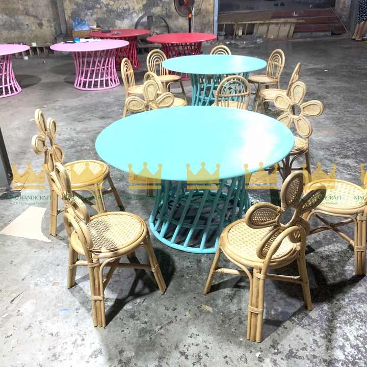 Modern Blue Rattan Round Table and Chair Set Safe and Playful Addition for Kids' Room or Hotel Exterior Use-Super Sale!