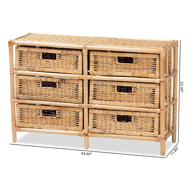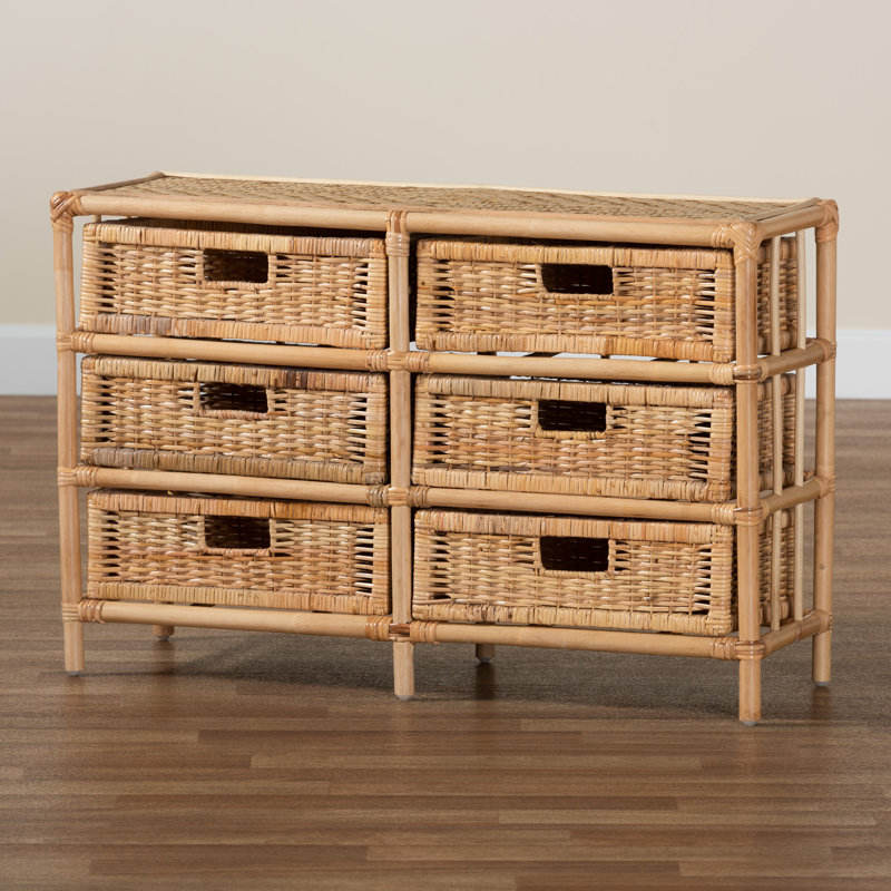 Modern Bohemian Rattan 6-Drawer Storage Cabinet Organizer