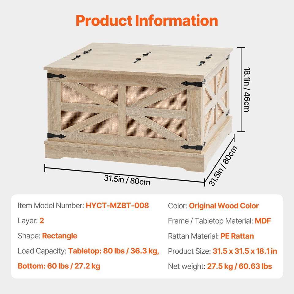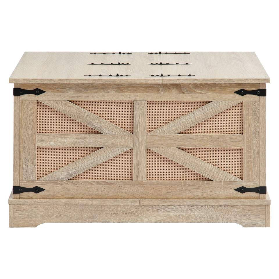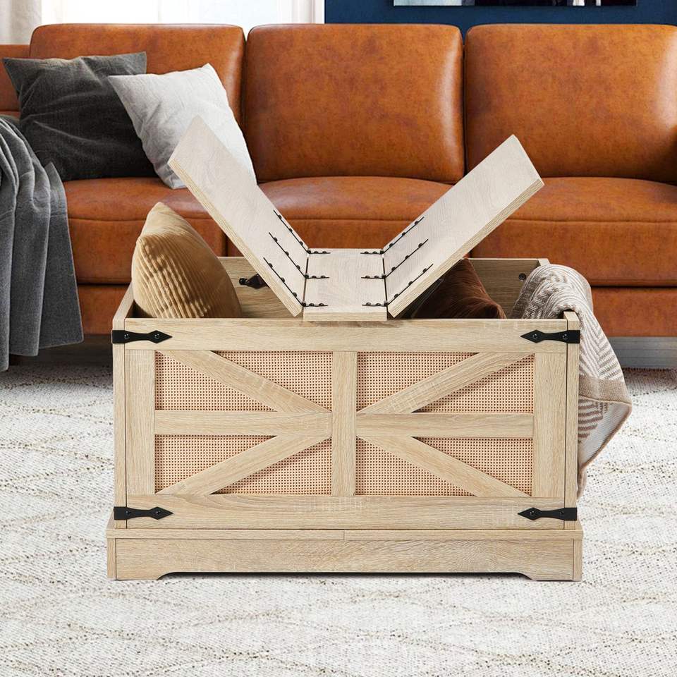 Modern Boho Style 32-Inch Rectangle PE Rattan Woven Wood Coffee Table with MDF Top and Storage Woven Wood Coffee Table