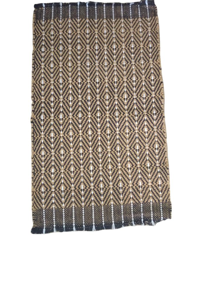 Modern BohoStyle Small Area Rug Handwoven Black Gold Diamond Flatweave Cotton Dhurrie Mat Reversible Woven Carpet