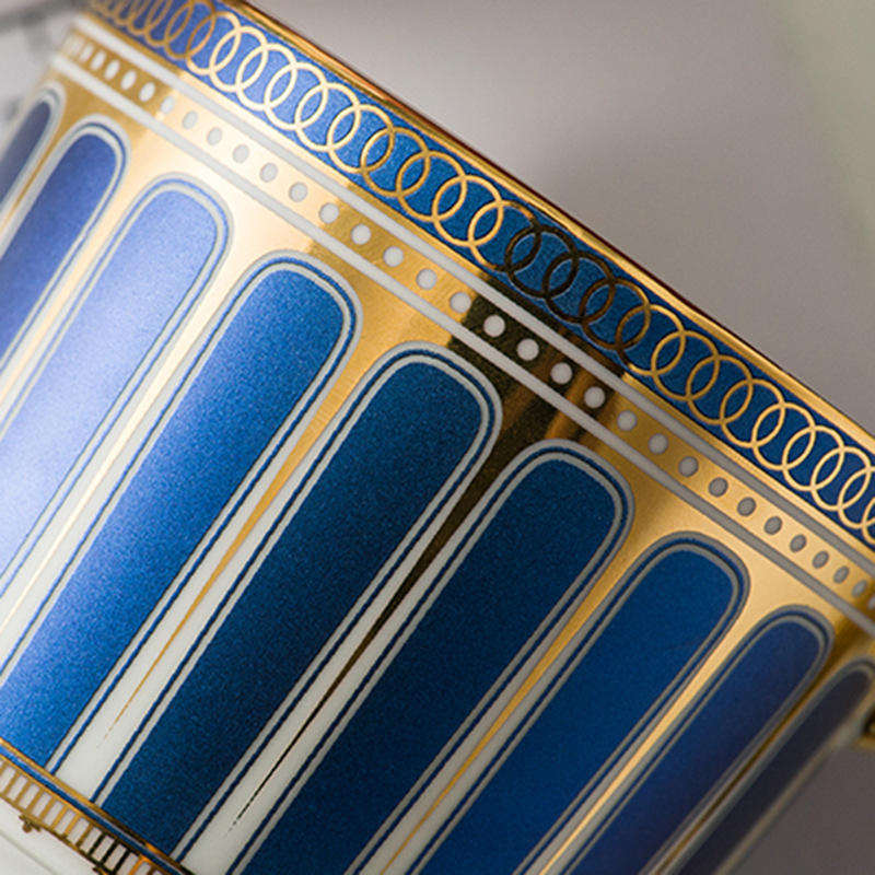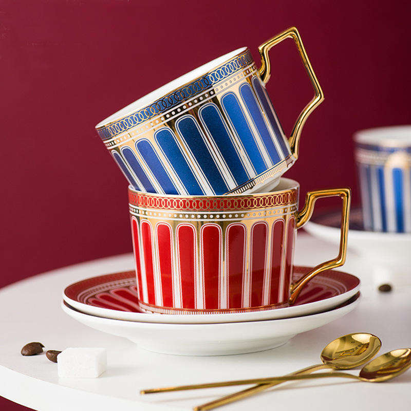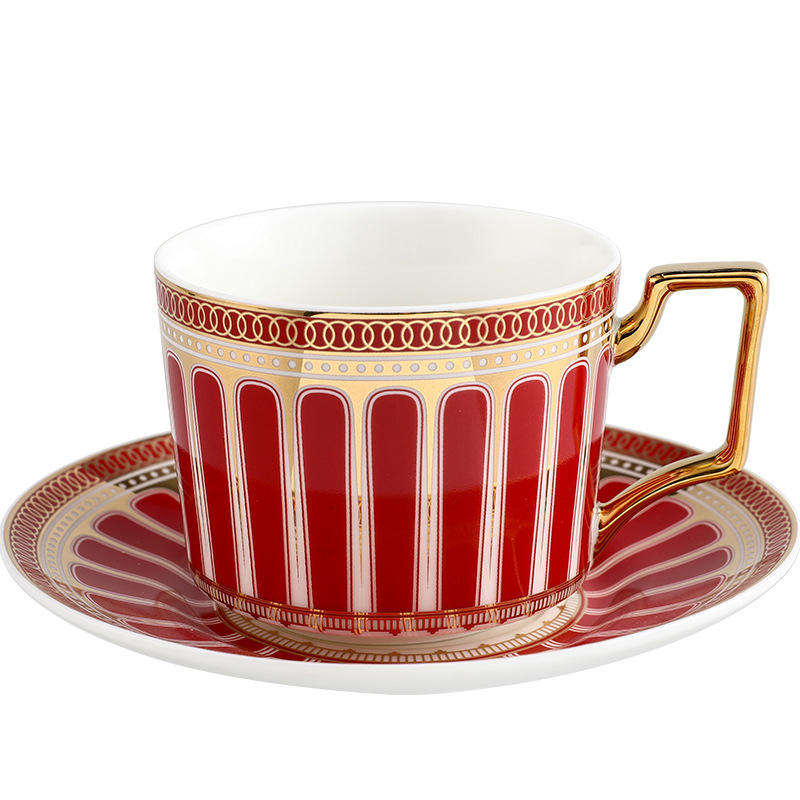 Modern Bone China Coffee Cup Saucer Set 250ml Roman Holiday-Themed British Afternoon Glazed White Gold Golden Spoon