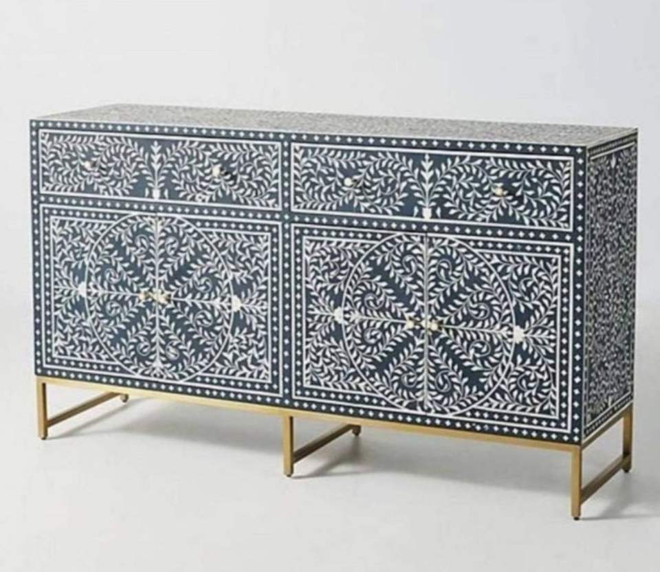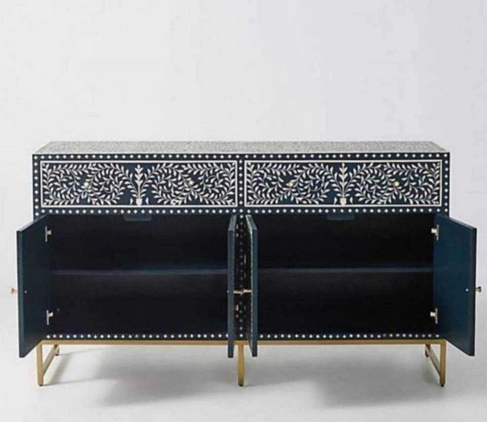 Modern Bone Inlay Buffet Floral Cupboard Sideboard and Cabinet with Brass Base for Kitchen and Dining