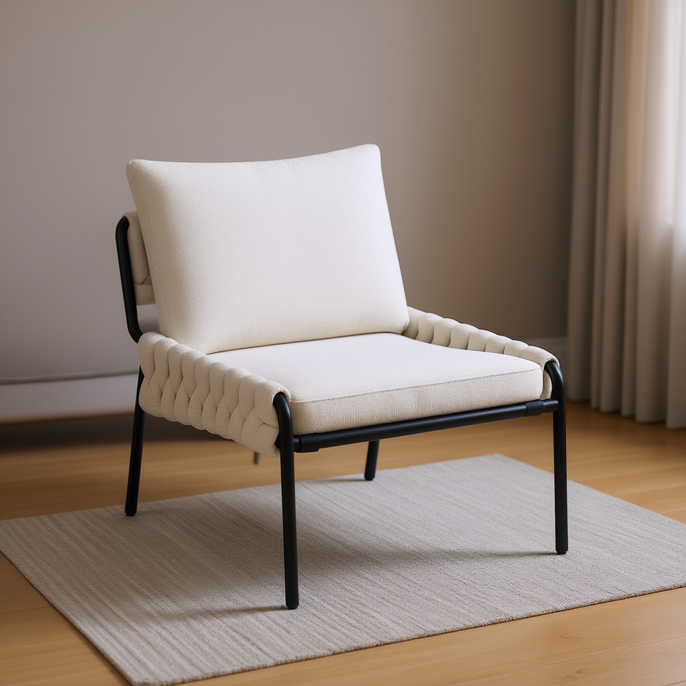 Modern Braided Upholstery Accent Chair Metal Frame Soft Cushioned Seat Living Room Bedroom Furniture