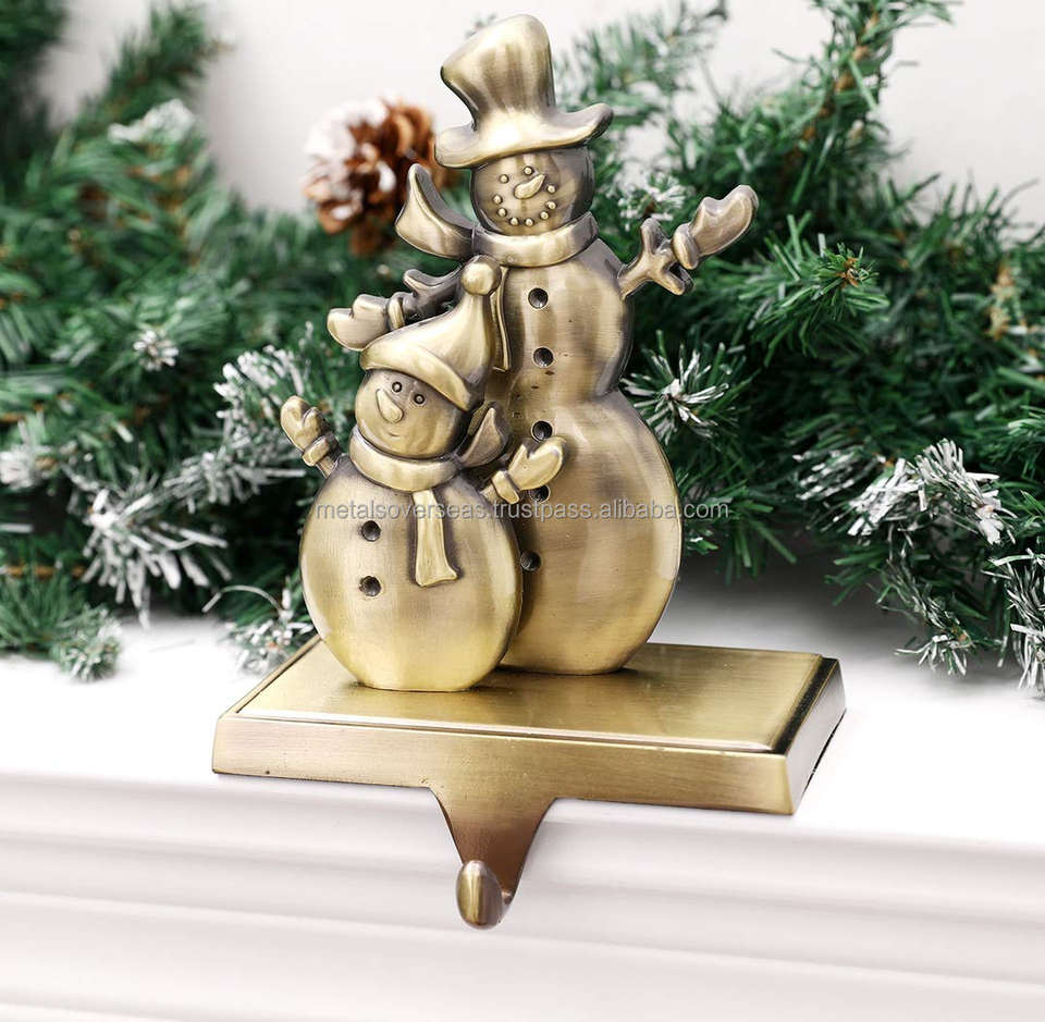 Modern Brass Christmas Stocking Holders Set with Reindeer Snowman Snowflake Tree Factory Wholesale for Retail Christmas Decor