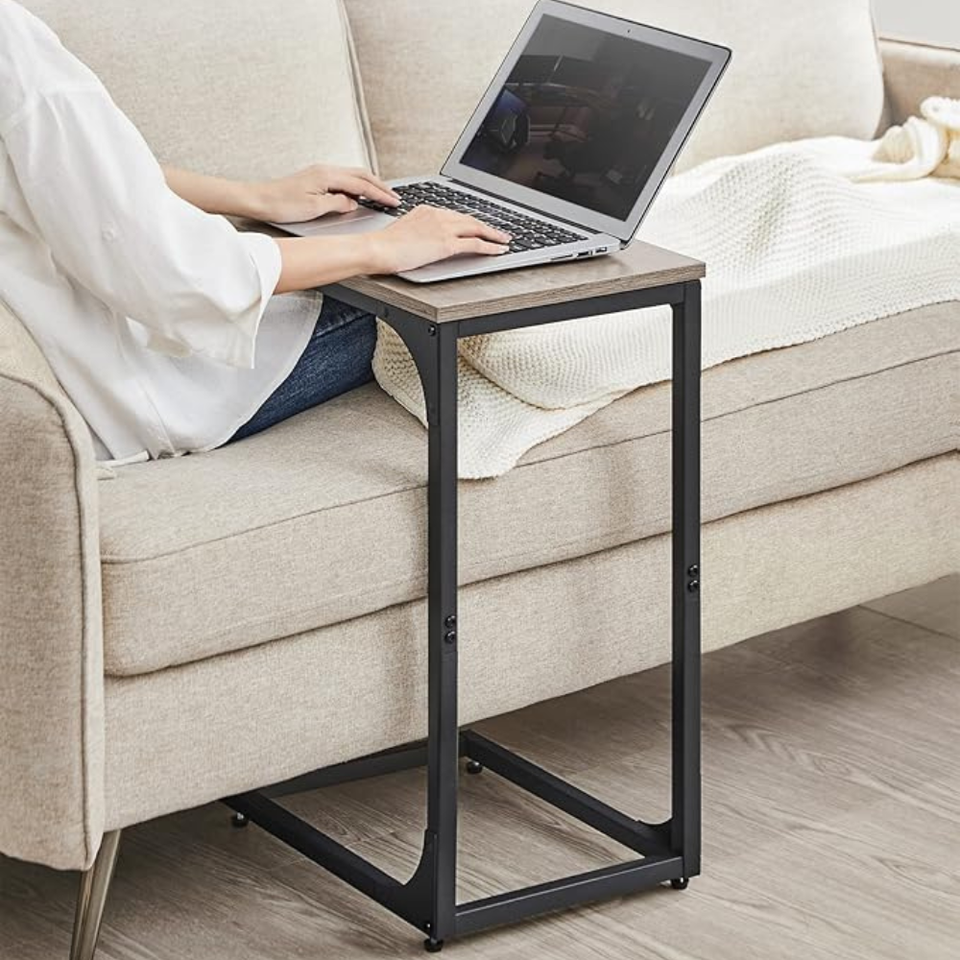 Modern C-Shape Side Table with Veneer Top Powder Coated Metal Frame Hospitality Furniture Manufacturer for Living Room, Bedroom