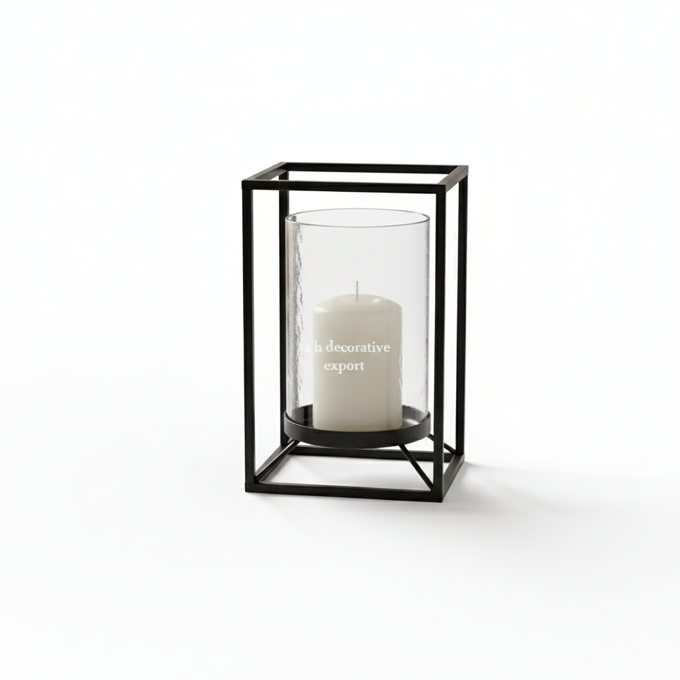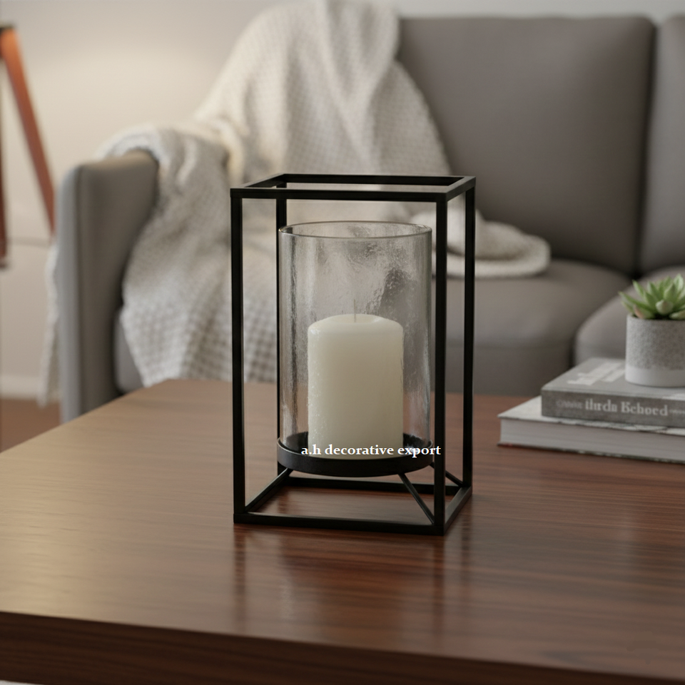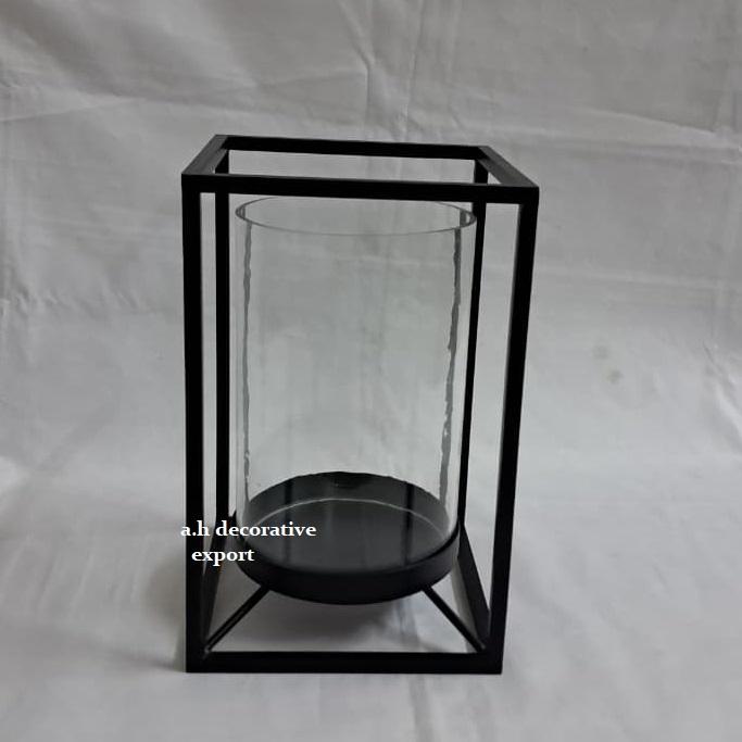 Modern Customized Eco-Friendly Cage Hurricane Lantern Black Square Iron Frame Candle Holder Home Wedding Centerpiece Tealight