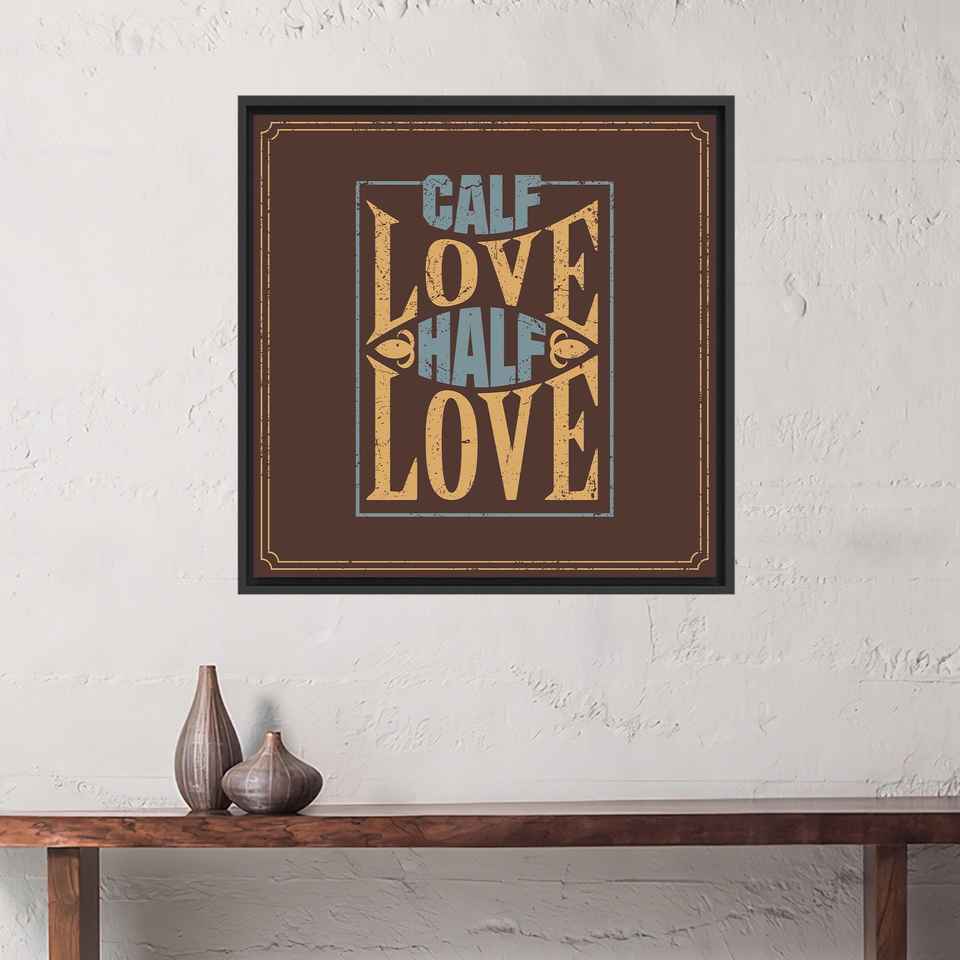 Modern Calf Love Half Love Printed Canvas Art - Valentine's Day Decor,Black Framed