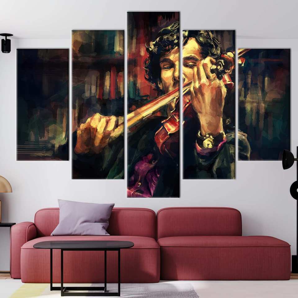 Modern Canvas Art: Printed Music Room Violinist Poster,5P Mix:Gallery Wrap