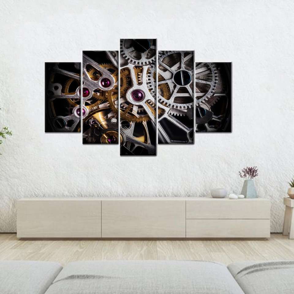 Modern Canvas Poster: Gold Printed Automatic Watch Mechanism Art,5P Mix:Gallery Wrap