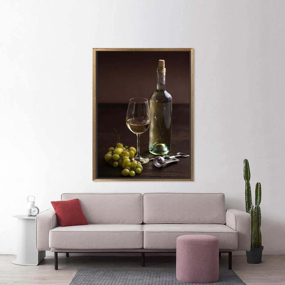 Modern Canvas Print: Wine and Grapes Elegance Boho Art,Gold Framed