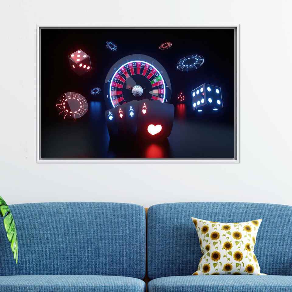 Modern Casino Gaming Canvas Print - Elegant Office Art & Unique Gift,1P:White Framed