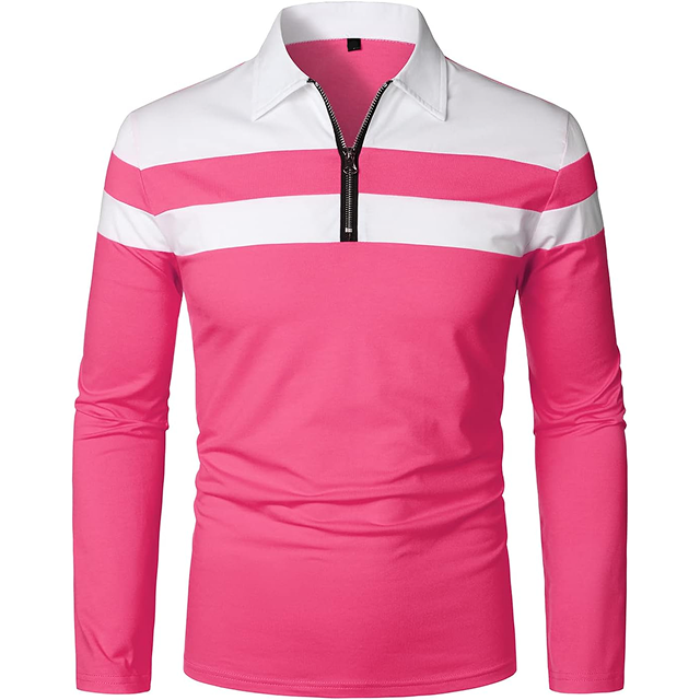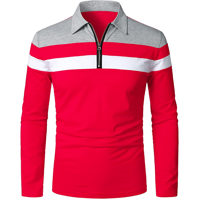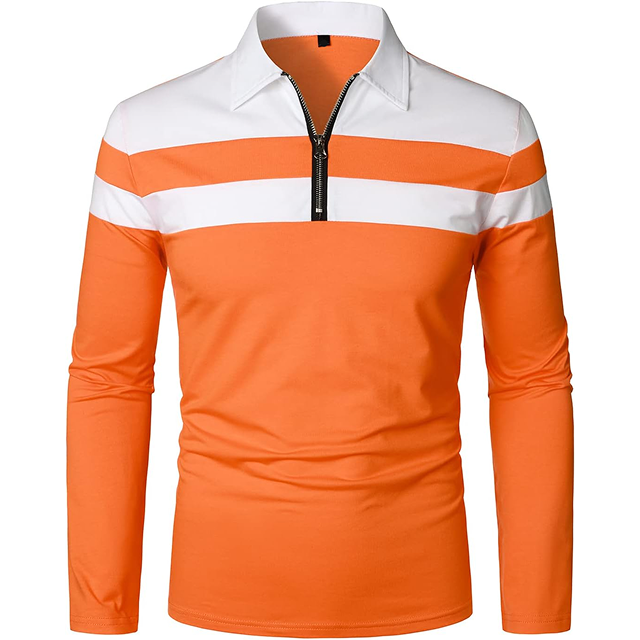 Modern Casual Long Sleeve Zipper Polo Shirt Contrast Panel Multi Color Wholesale Orders Direct Supply
