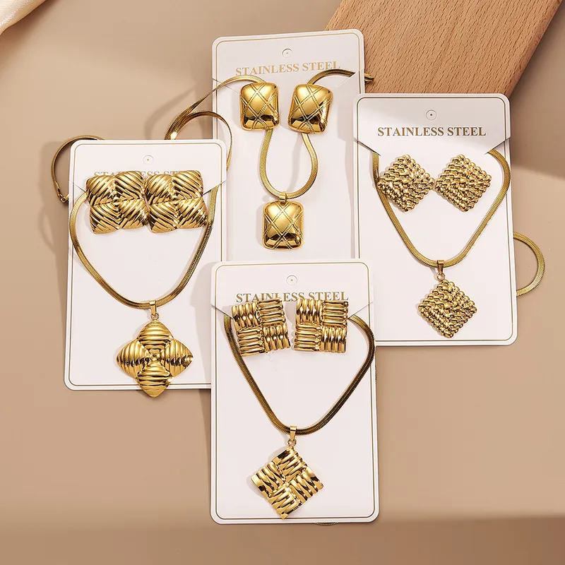 Modern Casual Vacation Style Jewelry Set for Women with Square Rectangle Design Stainless Steel Gold Plated Snake Chain Finish