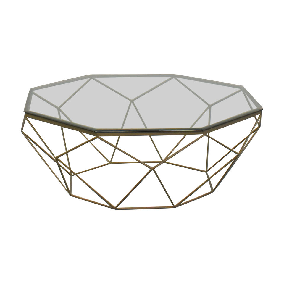 Modern Center Table High Quality Glass Top Coffee Table for Living Room Single with Brass Antique Color Good Material Used