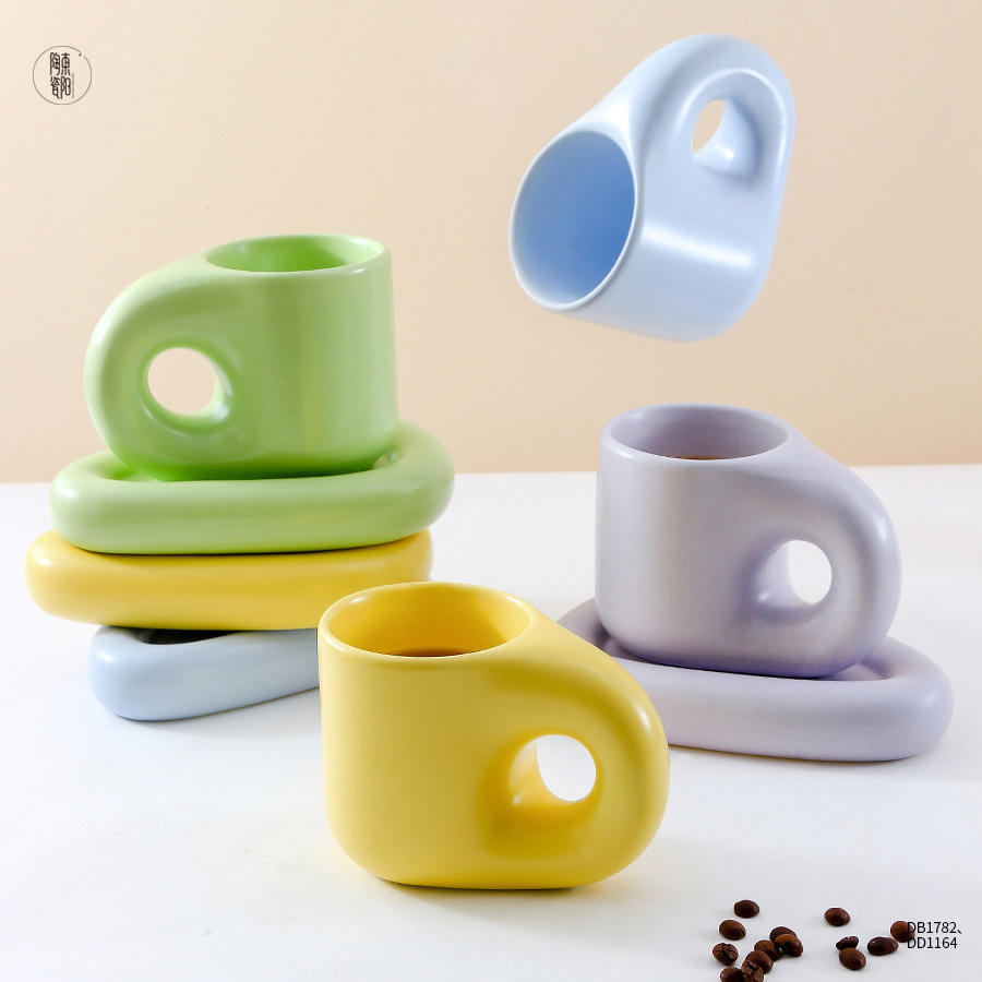 Modern Ceramic Coffee Cup Set Irregular Shape Solid Color Taro Purple Yellow Green Light Steel Blue Afternoon Tea Use