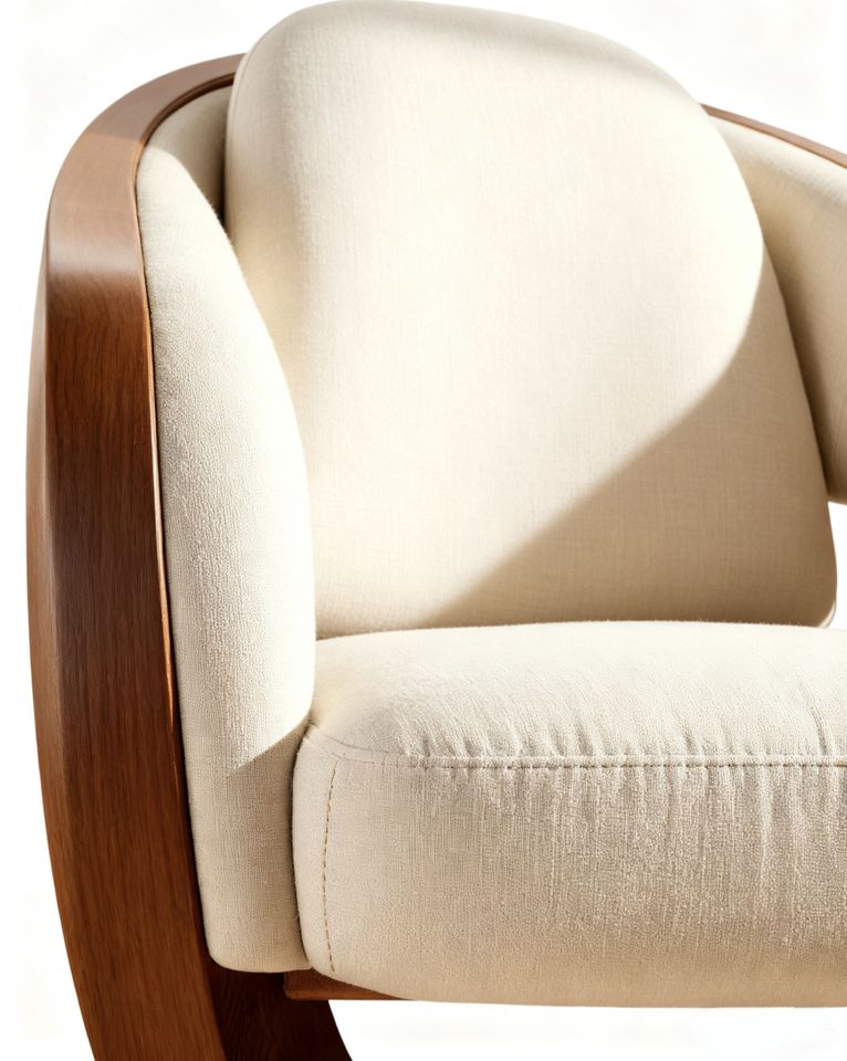 Fabric Upholstery + Walnut Veneer Framematerial