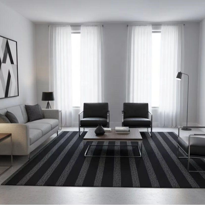 Modern Charcoal Floral Kilim Dhurry Rug | Black & Grey Machine Made Non-Slip Polyester Flatweave Area Carpet