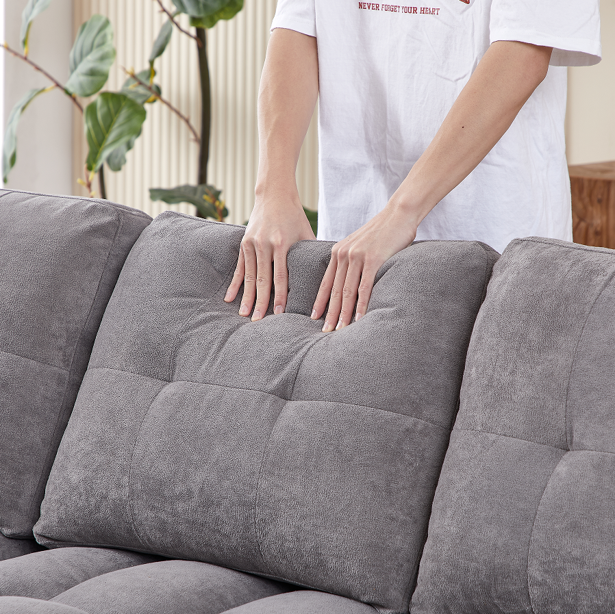 Modern Chenille Modular Section Sofa Convertible U- & L-Shaped Extendable for Apartment Hotel Villa Use Pillow Included