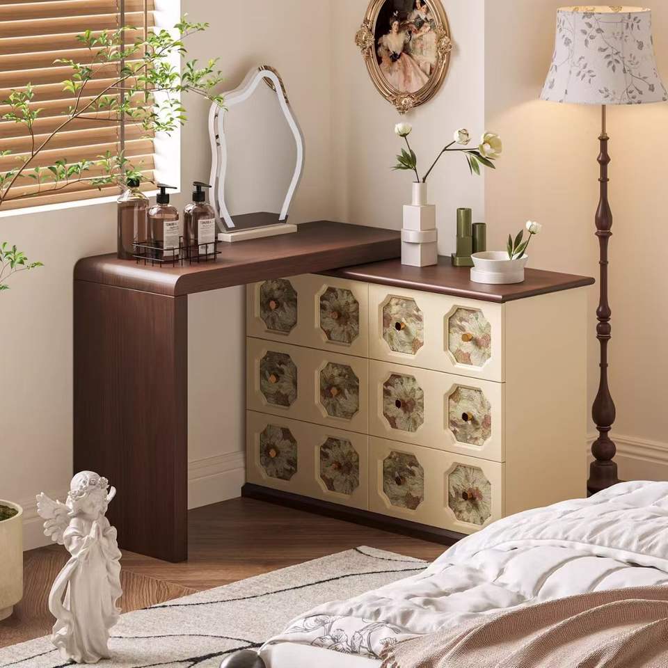 Modern Chinese Style Dressing Table Solid Wood Extendable Makeup Vanity Bedroom Storage With Mirror