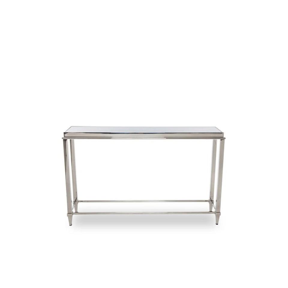 Modern Chrome Mirrored Convertible Console Table with Metal Top and Frame Hotel Entryway Furniture